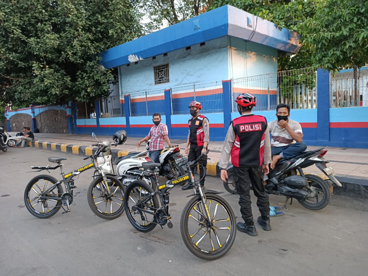 Seputarperak.com- Anggota Satsabhara Polres Pelabuhan Tanjung Perak menggelar patroli bersepeda di seputaran Terminal Roro, Pelabuhan Jamrud Utara, Selasa pagi, 9 Juni 2020.