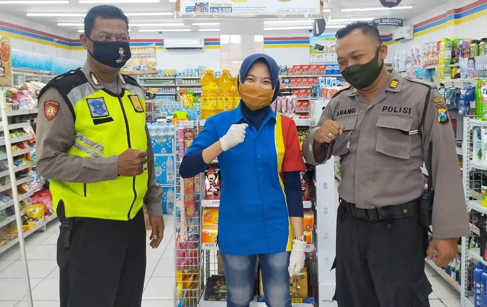 Seputarperak.com- Patroli dialogis dilakukan anggota Unit Sabhara Polsek Krembangan, Polres Pelabuhan Tanjung Perak di mini market Indomart, Jalan Tanjung Sadari, Kamis siang, 11 Juni 2020.
