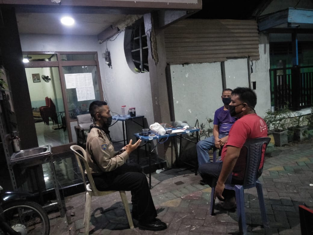 Seputarperak.com- Patroli dilakukan Ipda Eko Mustaghfirin, Panit Binmas Polsek Asemrowo, Polres Pelabuhan Tanjung Perak di pemukiman RT 02 RW 01 Kelurahan Asemrowo, Jumat malam, 12 Juni 2020.