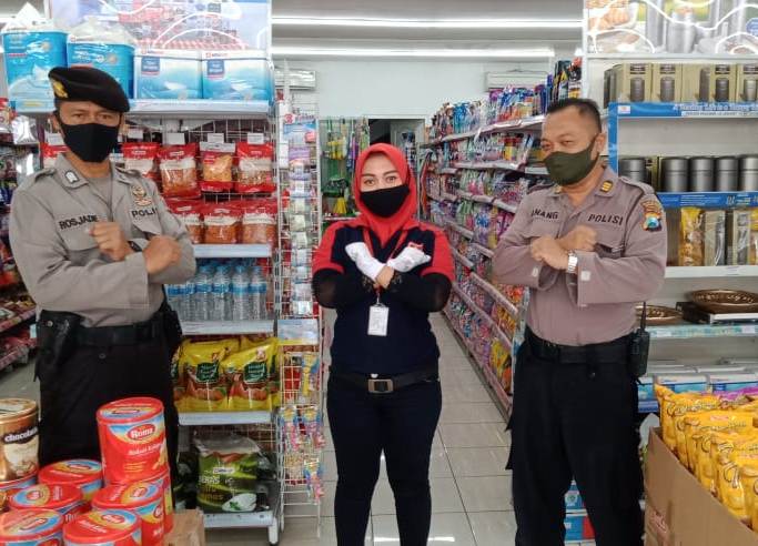 Seputarperak.com- Patroli dilakukan anggota Polsek Krembangan, Polres Pelabuhan Tanjung Perak di mini market Alfamidi, Jalan Gadukan, Sabtu siang, 13 Juni 2020.