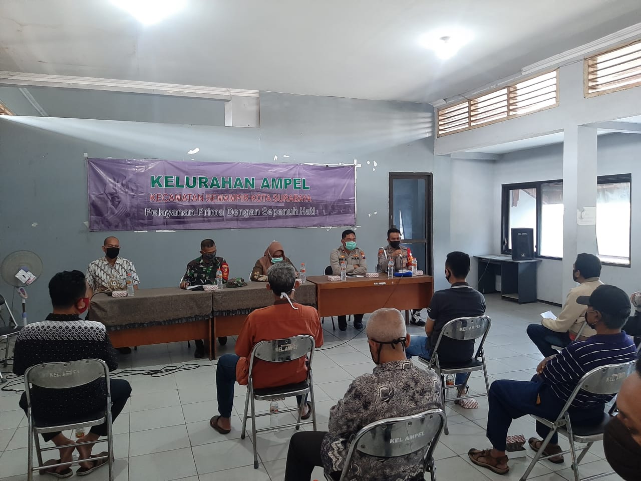 Seputarperak.com- Kegiatan rapat Muspika Semampir digelar di Aula Kelurahan Ampel, Rabu siang, 17 Juni 2020. Acara yang membahas Covid-19 ini juga dihadiri tim Asistensi Polres Pelabuhan Tanjung Perak yang digawangi Kasi Propam Iptu Heri Mulyono.