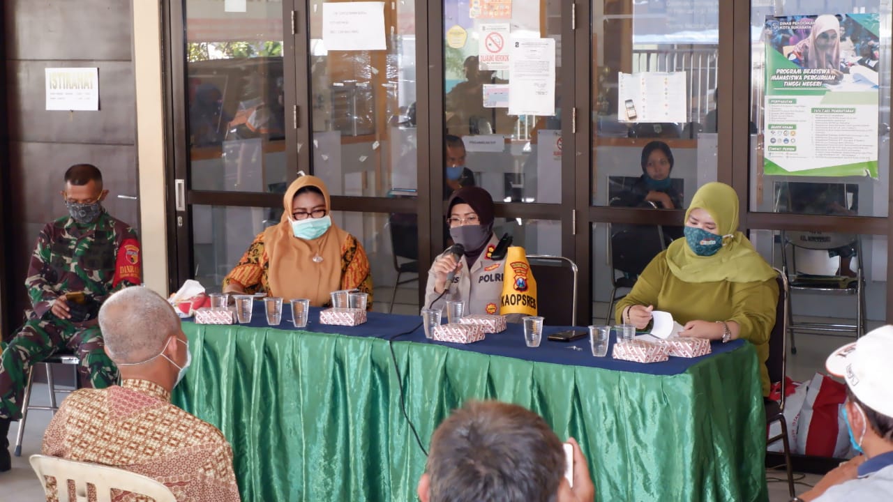 Seputarperak.com- Kapolres Pelabuhan Tanjung Perak, AKBP Ganis Setyaningrum, S.Si, MH memberikan sosialisasi pencegahan dan penanganan Covid-19 di kantor Kelurahan Wonokusumo, Kecamatan Semampir, Kamis, 18 Juni 2020.