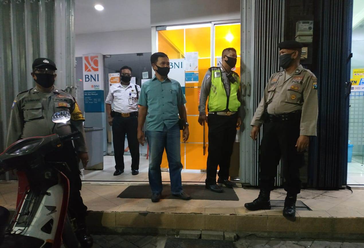 Seputarperak.com- Kegiatan patroli malam dilakukan personil Polsek Semampir, Polres Pelabuhan Tanjung Perak di kantor Bank BTN dan BNI Jalan KH Mas Mansyur, Minggu, 21 Juni 2020.