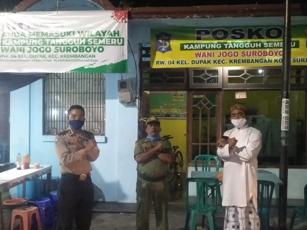 Seputarperak.com- Himbauan penerapan protokol kesehatan pencegahan Covid-19 disampaikan Ipda Eko Mustaghfirin, Panit Binmas Polsek Krembangan, Polres Pelabuhan Tanjung Perak kepada para anggota tim Kampung Tangguh RW 04 Kelurahan Dupak.