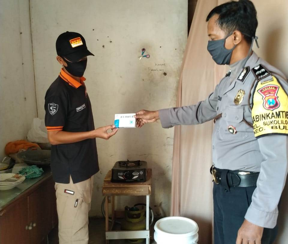 Seputarperak.com- Obat herbal Lianhua diberikan Aipda Dhanu Kriswana, Babinkamtibmas Sukolilo Baru, Polsek Kenjeran, Polres Pelabuhan Tanjung Perak kepada Kasatgas Linmas Kelurahan Sukolilo Baru, Kamis siang, 25 Juni 2020.