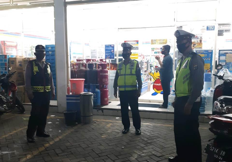 Seputarperak.com- Kegiatan patroli malam dilakukan personil piket Polsek Pabean Cantikan, Polres Pelabuhan Tanjung Perak di mini market Indomart, Jalan KH Mas Mansyur, Kamis, 25 Juni 2020.
