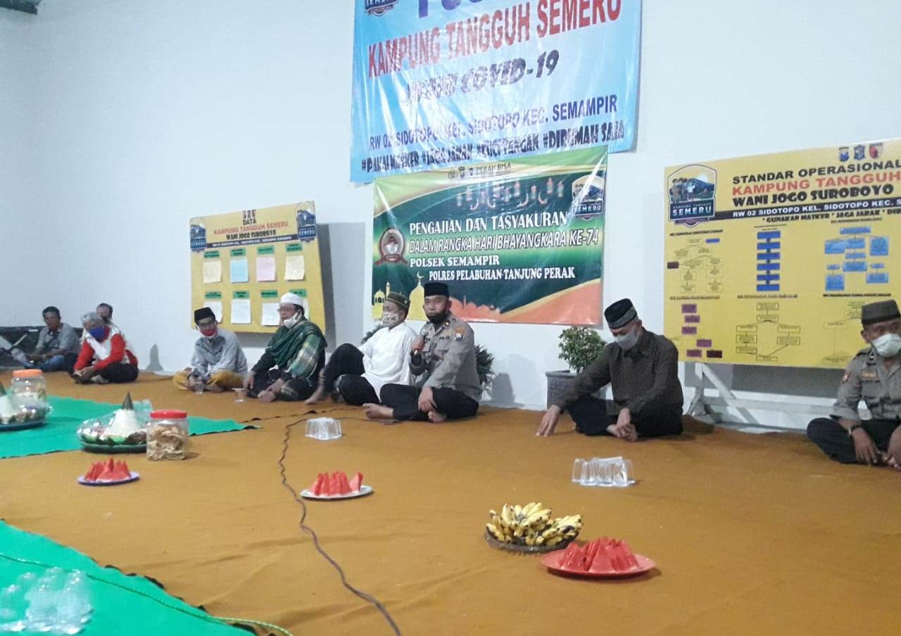 Seputarperak.com- Tasyakuran memperingati HUT Bhayangkaran Ke 74 digelar Polsek Semampir, Polres Pelabuhan Tanjung Perak bersama warga RW 02 Kelurahan Sidotopo, Selasa malam, 30 Juni 2020.