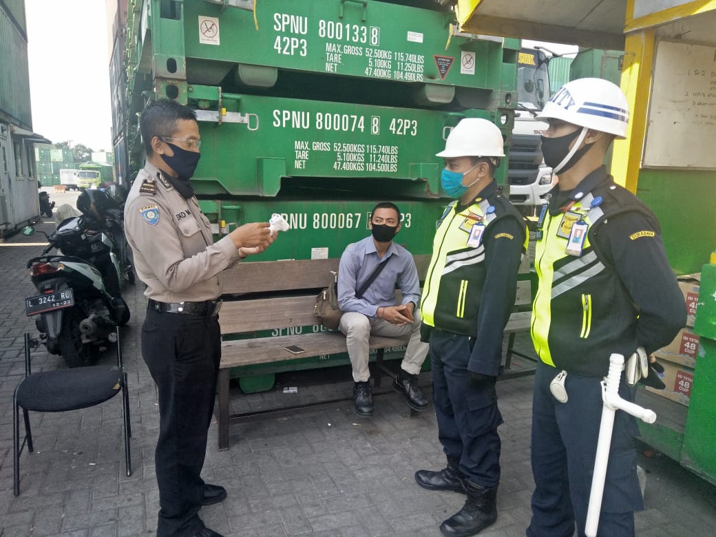Seputarperak.com- Penyuluhan disampaikan Ipda Eko Mustaghfirin, Panit Binmas Polsek Krembangan, Polres Pelabuhan Tanjung Perak kepada petugas sekuriti PT SPIL Depo Japfa di Jalan Laksda M Nasir, Jumat pagi, 3 Juli 2020.