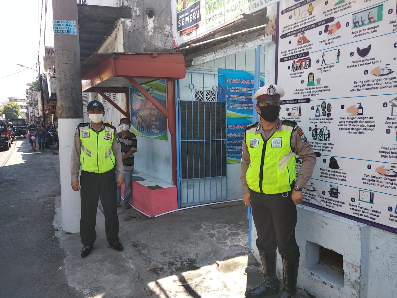 Seputarperak.com- Patroli dilakukan personil Unit Lantas dan Unit Sabhara Polsek Pabean Cantikan, Polres Pelabuhan Tanjung Perak di pemukiman Jalan Dukuh untuk mengantisipasi kerawanan, Sabtu pagi, 4 Juli 2020.
