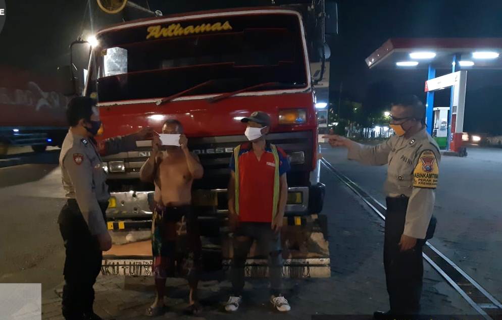 Sepanjang rute patroli, personil Polsek Krembangan juga membagikan masker gratis kepada setiap orang yang kedapatan tidak menggunakan masker.