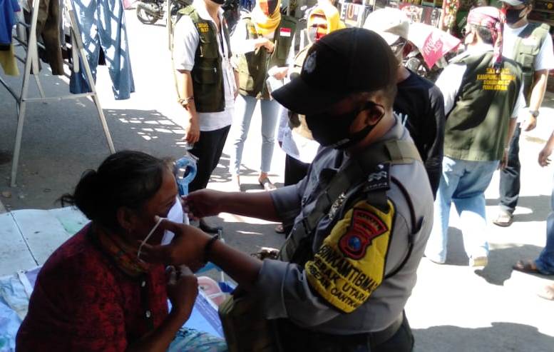 Saat itu mereka yang tidak menggunakan masker diberikan himbauan dan kemudian dipasangkan masker gratis sambil diingatkan agar selalu jaga jarak dan jaga kebersihan diri, termasuk rajin mencuci tangan.