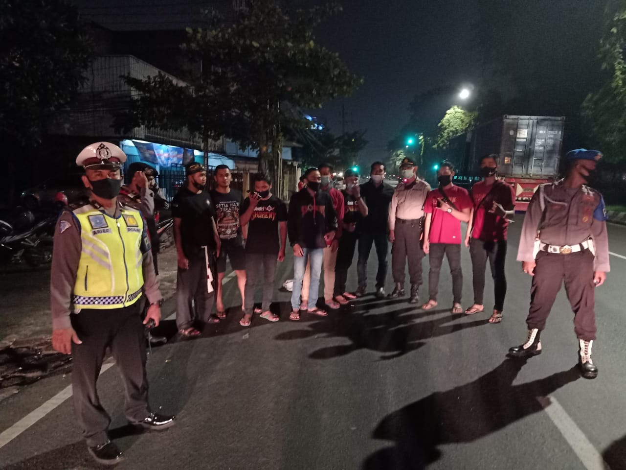 Saat itu para personil juga menertibkan orang-orang yang bergerombol di jalan-jalan. Termasuk membubarkan acara syukuran yang digelar massa PSHT di Taman Barunawati dan memberikan himbauan untuk mematuhi protokol kesehatan pencegahan Covid-19.