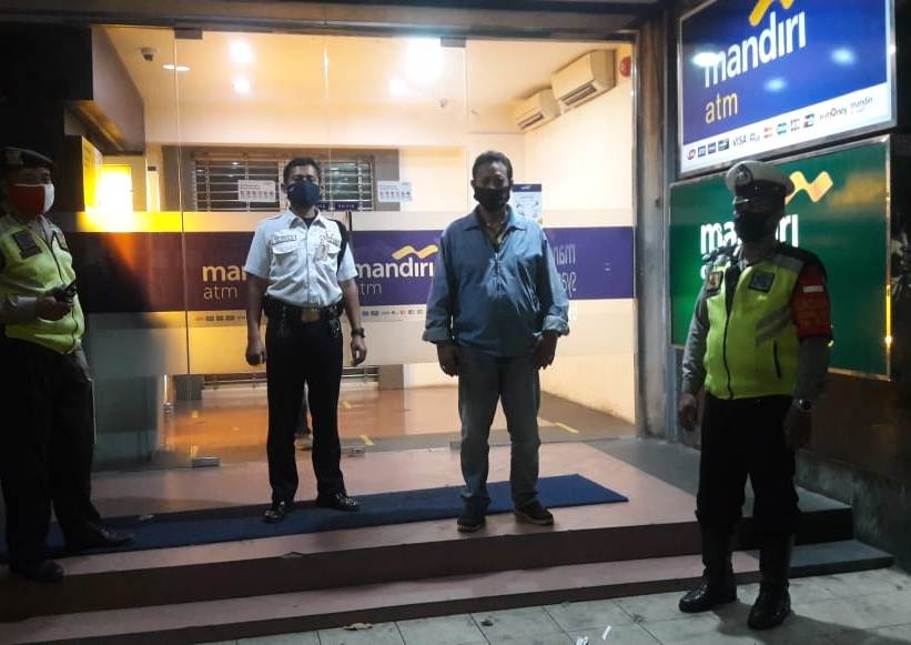 Diantaranya seperti yang dilakukan personil Polsek Pabean Cantikan di kantor Bank Mandiri, Jalan Kembang Jepun, Minggu malam, 12 Juli 2020.