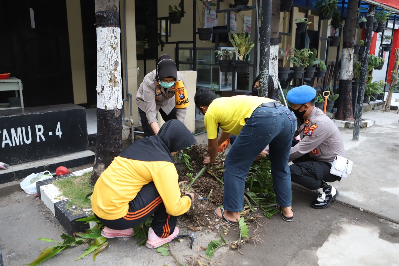 Kegiatan kerja bakti tersebut tidak hanya dilakukan di lingkungan Mapolres tapi juga serentak dilakukan di Polsek-Polsek jajaran yang dipimpin masing-masing Kapolsek.