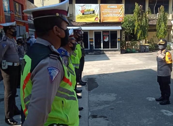 Seputarperak.com- Kapolres Pelabuhan Tanjung Perak, AKBP Ganis Setyaningrum, S.Si, MH memberikan arahan kepada para personil Satlantas, Sabtu pagi, 18 Juli 2020.