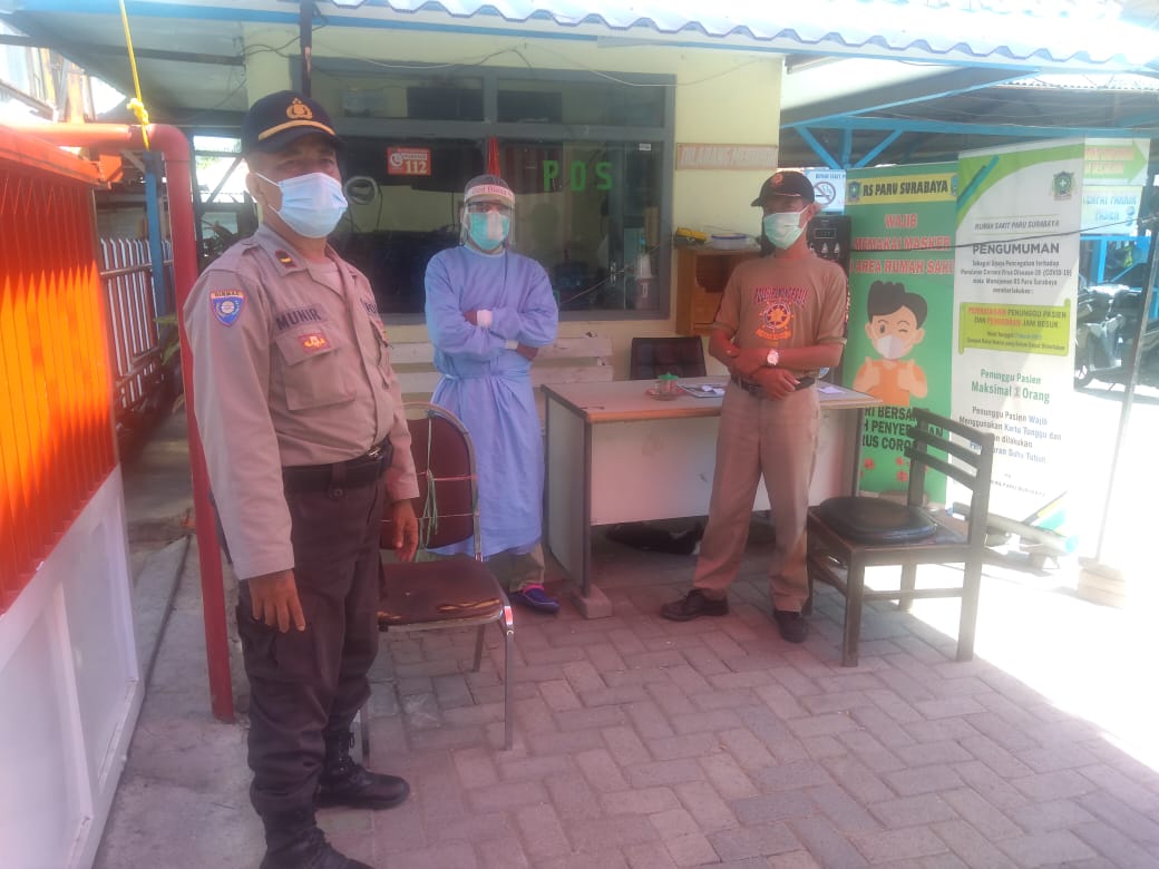 Seputarperak.com- Patroli dilakukan personil Polsek Semampir, Polres Pelabuhan Tanjung di Rumah Sakit Paru, Jalan Karang Tembok, Minggu pagi, 19 Juli 2020.
