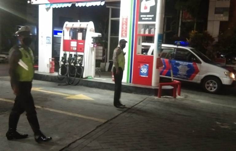 Seputarperak.com- Patroli dilakukan personil Polsek Pabean Cantikan, Polres Pelabuhan Tanjung Perak di SPBU Jalan Stasiun Kota, Kamis malam, 23 Juli 2020.