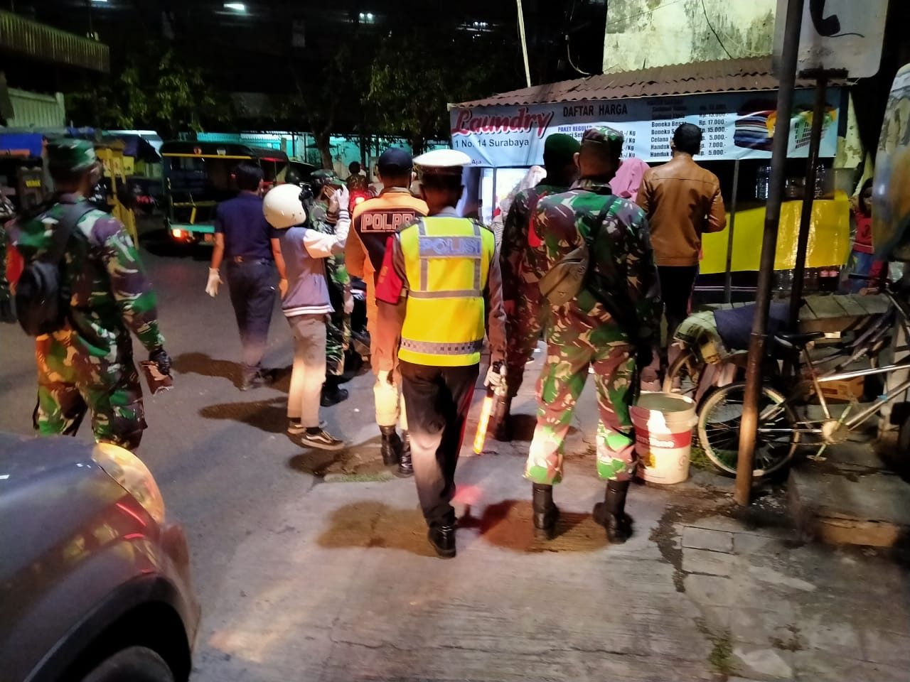 Seputarperak.com- Polsek Pabean Cantikan, Polres Pelabuhan Tanjung Perak bersama instansi samping melakukan sosialisasi Perwali nomor 33 Tahun 2020 tentang aturan jam malam di pertokoan dan warung-warung, Sabtu malam, 25 Juli 2020.
