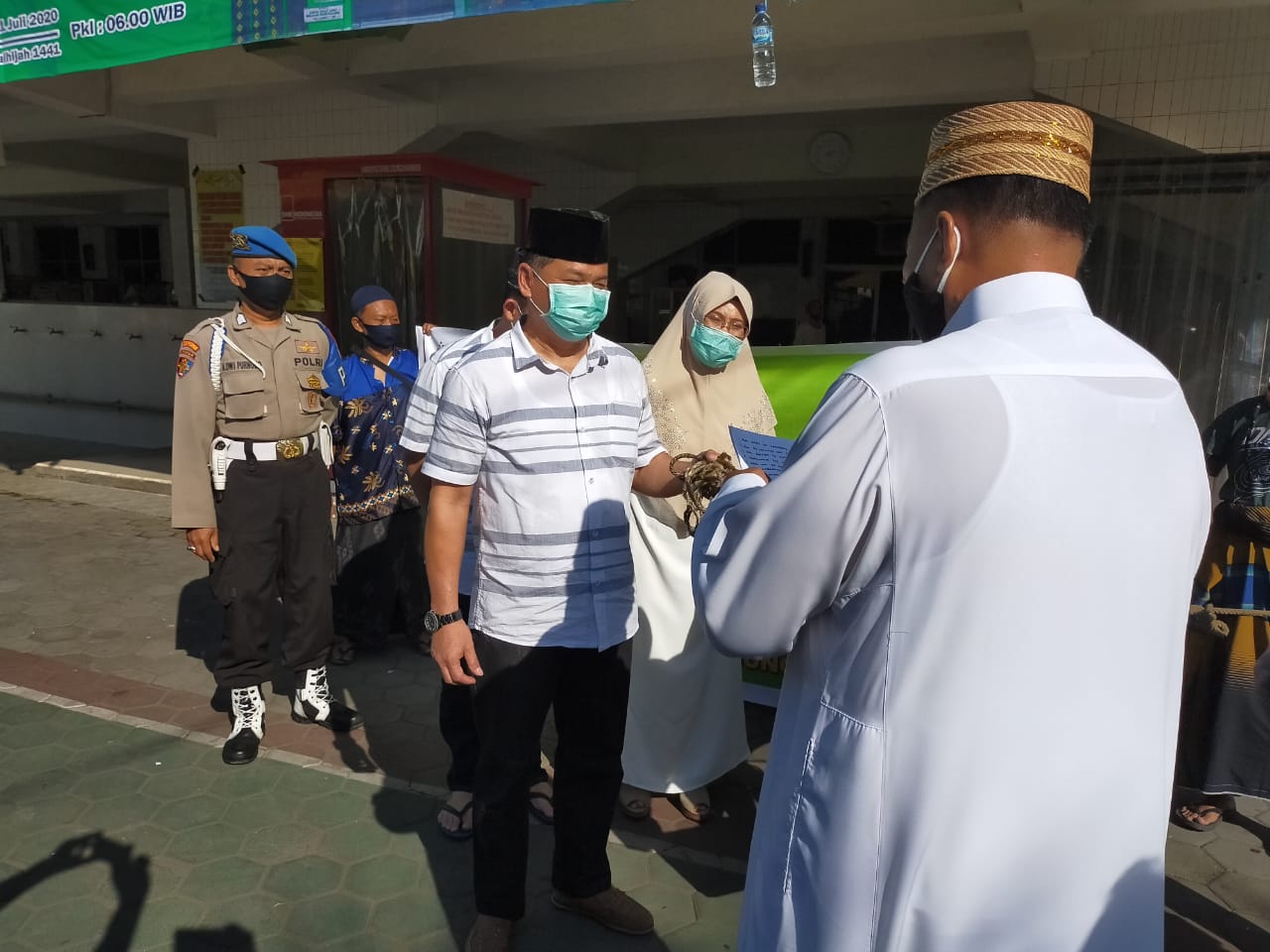 Seputarperak.com- Kapolres Pelabuhan Tanjung Perak, AKBP Ganis Setyaningrum, S.Si, MH bersama keluarga menyerahkan kurban satu ekor satu ke Masjid Mujahidin, Jalan Perak Barat, Jumat pagi, 31 Juli 2020.