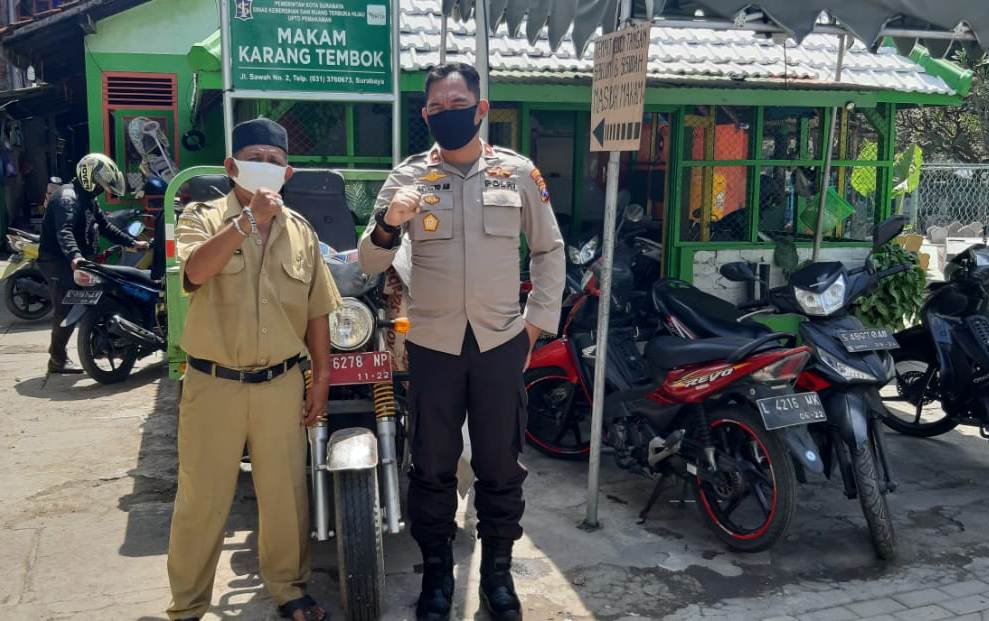 Seputarperak.com- Kapolsek Semampir, Polres Pelabuhan Tanjung Perak, Kompol Aryanto Agus mengunjungi Makam Karang Tembok di Jalan Sawah, Senin pagi, 3 Agustus 2020.