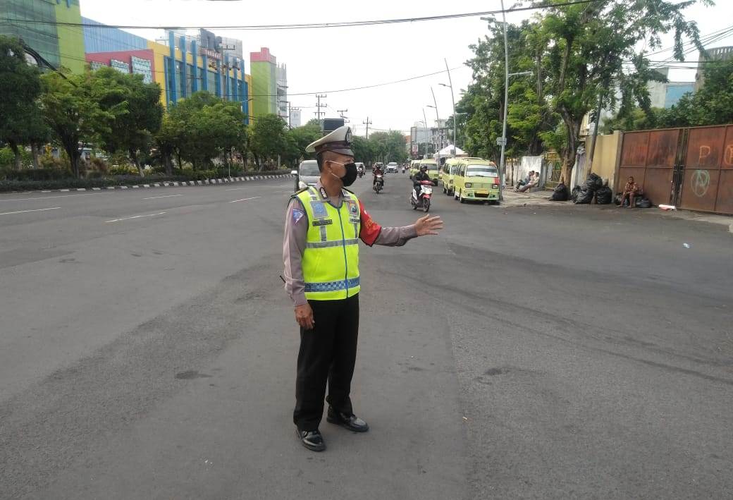 Seputarperak.com- Pengaturan lalu lintas pagi dilakukan personil Polsek Pabean Cantikan, Polres Pelabuhan Tanjung Perak di seputaran Jalan Bunguran, Selasa, 4 Agustus 2020.