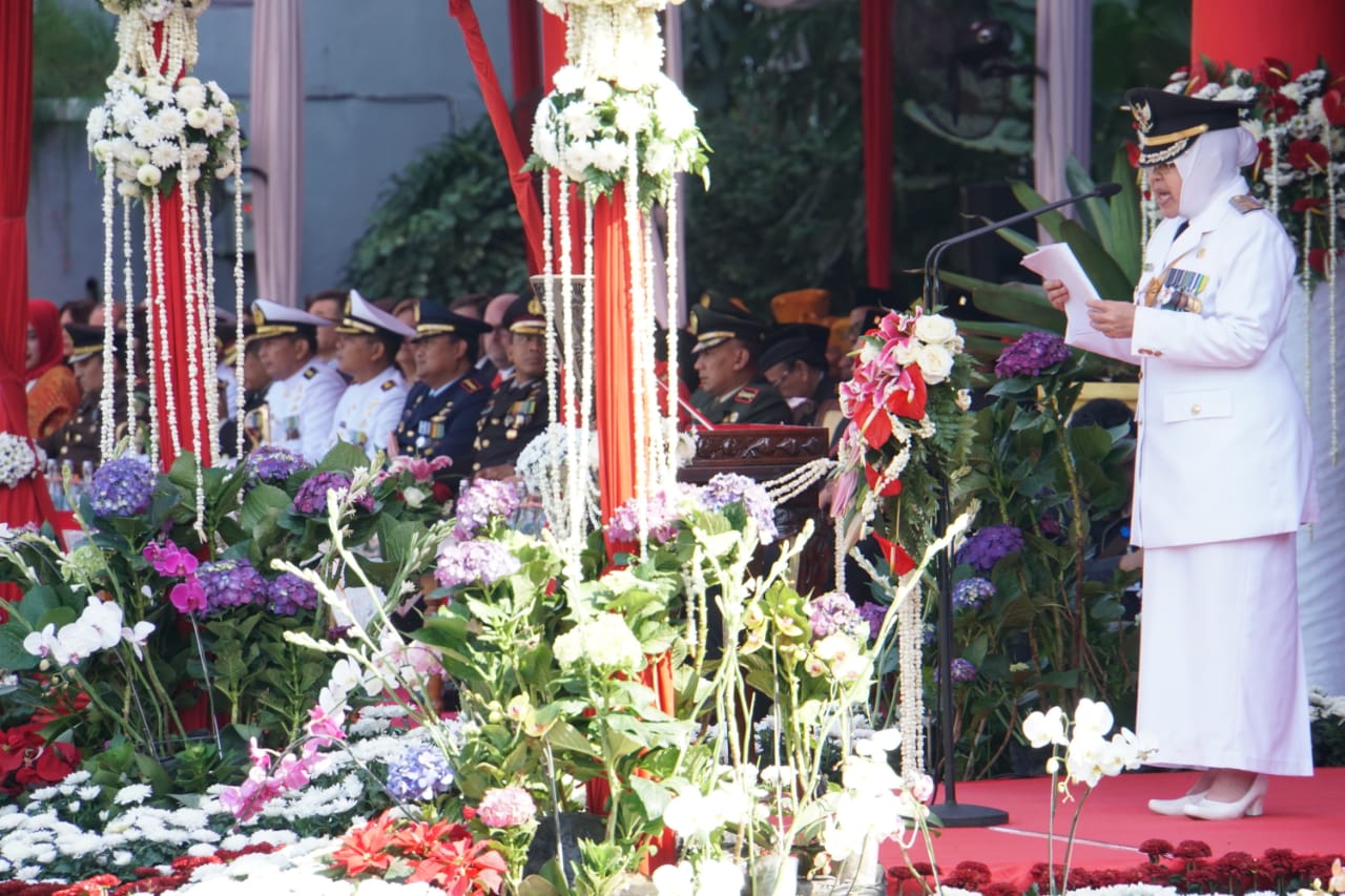 Kegiatan upacara yang berlangsung Jumat pagi, 17 Agustus 2018 itu berjalan dengan lancar dan tertib dipimpin Walikota Surabaya, Ibu Tri Rismaharini selaku Inspektur upacara.
