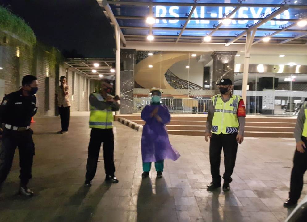 Seperti yang dilakukan personil Polsek Pabean Cantikan di Rumah Sakit Al Irsyad, Jalan KH Mas Mansyur, Minggu malam, 10 Agustus 2020.