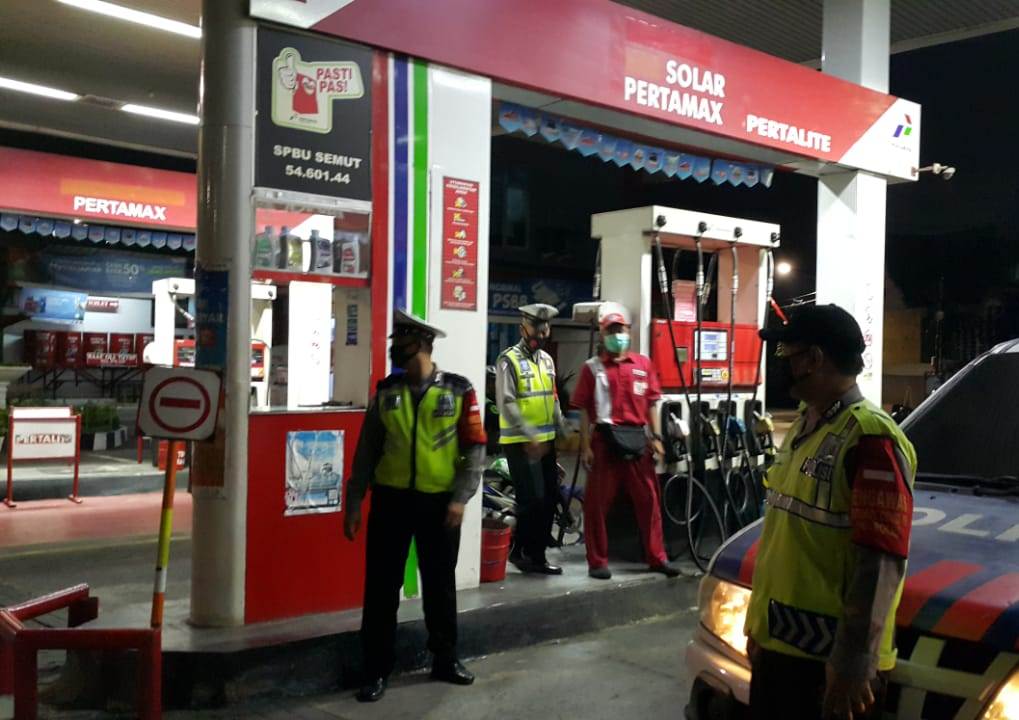 Seputarperak.com- Personil Polsek Pabean Cantikan, Polres Pelabuhan Tanjung Perak melaksanakan patroli malam di SPBU Jalan Stasiun Kota, Minggu, 9 Agustus 2020.