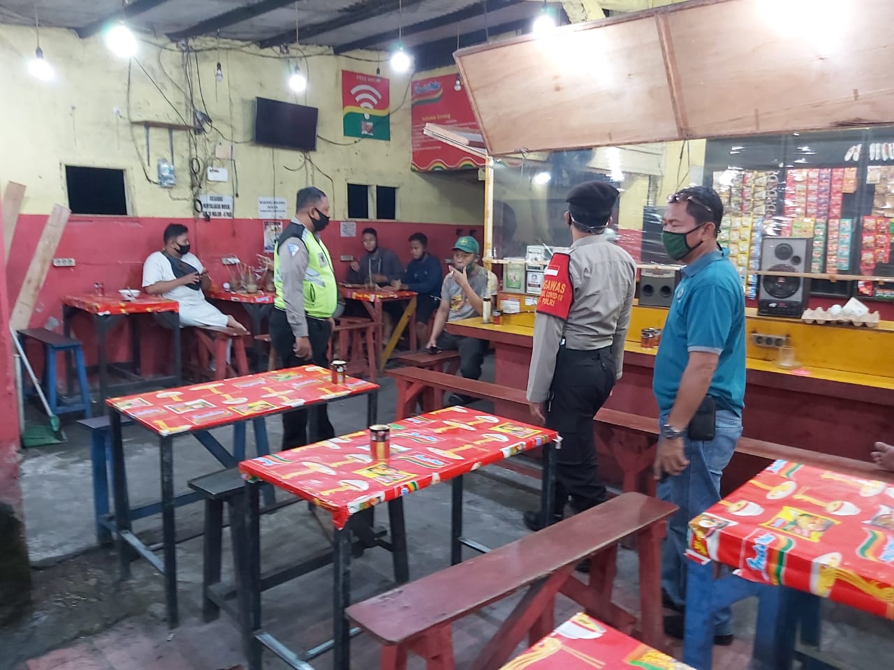 Seputarperak.com- Patroli dilakukan personil Polsek Krembangan, Polres Pelabuhan Tanjung Perak di café Jalan Demak, Senin malam, 10 Agustus 2020 dalam rangka penertiban masker.