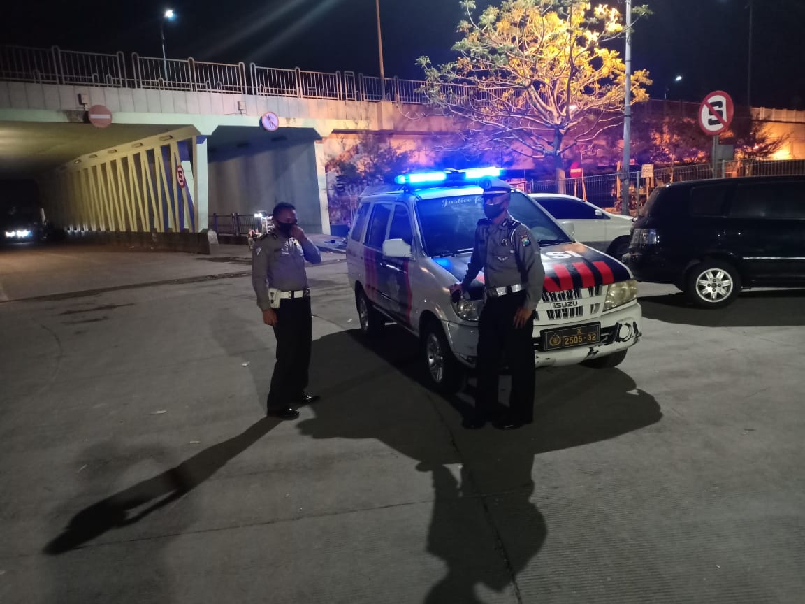 Seputarperak.com- Patroli mobile dilakukan personil Polsek Kenjeran, Polres Pelabuhan Tanjung Perak di seputaran Underpass Jembatan Suramadu, Senin malam, 10 Agustus 2020.
