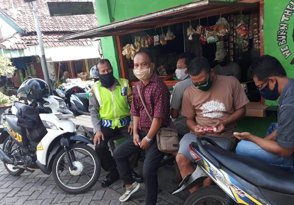 Dalam kunjungannya, Rabu pagi, 12 Agustus 2020, Aiptu Supriadi menyampaikan kepada warga yang sedang nongkrong di warung kopi, agar selalu mematuhi protokol kesehatan.