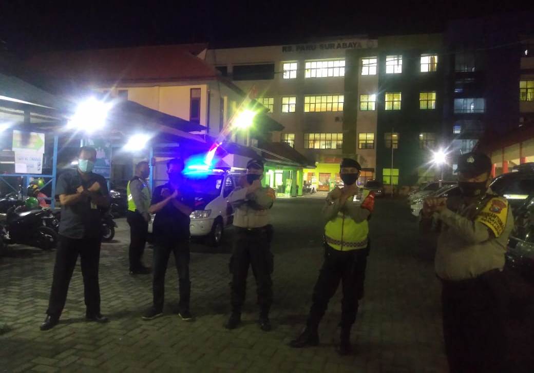 Diantaranya seperti yang dilakukan personil Polsek Semampir di Rumah Sakit Paru, Jalan Karang Tembok, Rabu malam, 12 Agustus 2020.