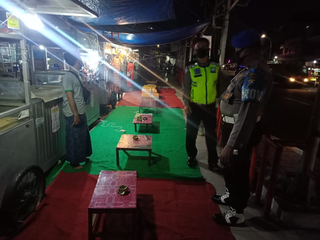 Selain itu orang-orang yang sedang berkerumun juga didatangi untuk dipantau adanya kemungkinan orang yang tidak menggunakan masker, guna diberikan teguran dan sanksi disiplin.