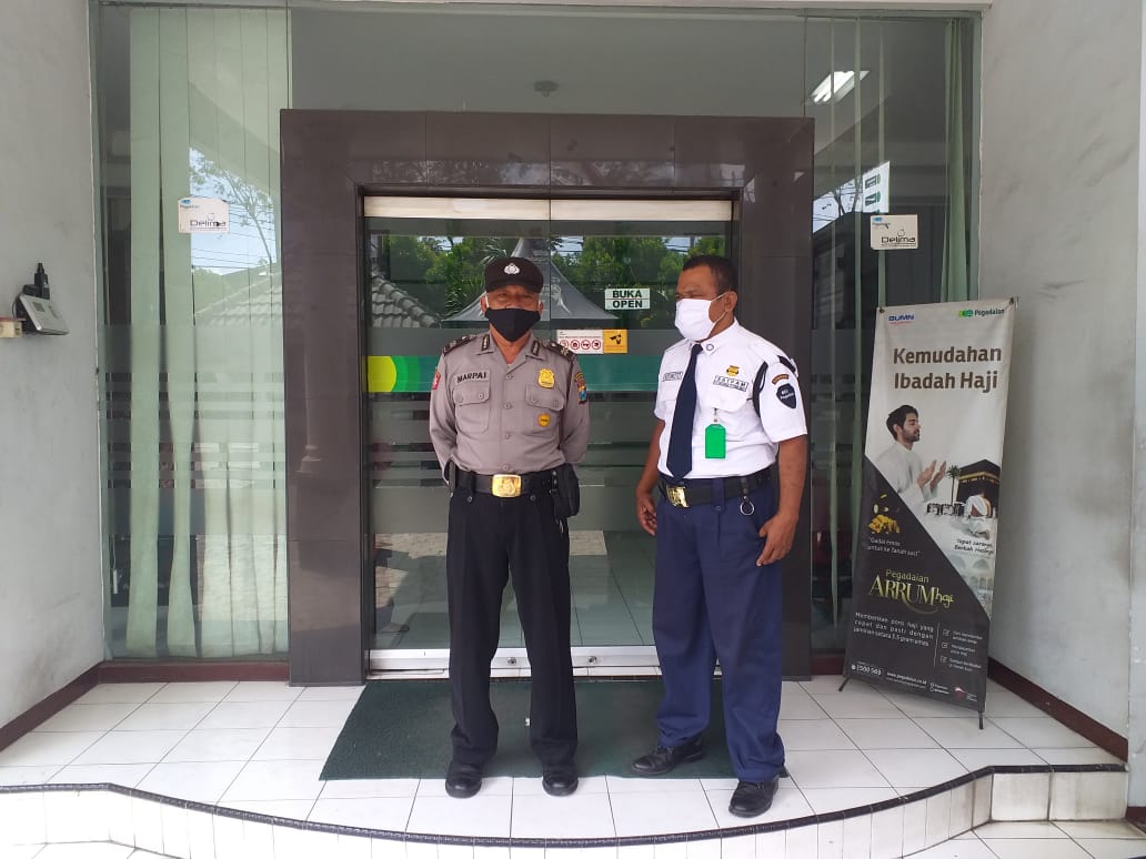 Seperti halnya yang dilakukan personil Unit Sabhara Polsek Asemrowo di kantor Pegadaian, Jalan Dupak Rukun, Sabtu pagi, 15 Agustus 2020.