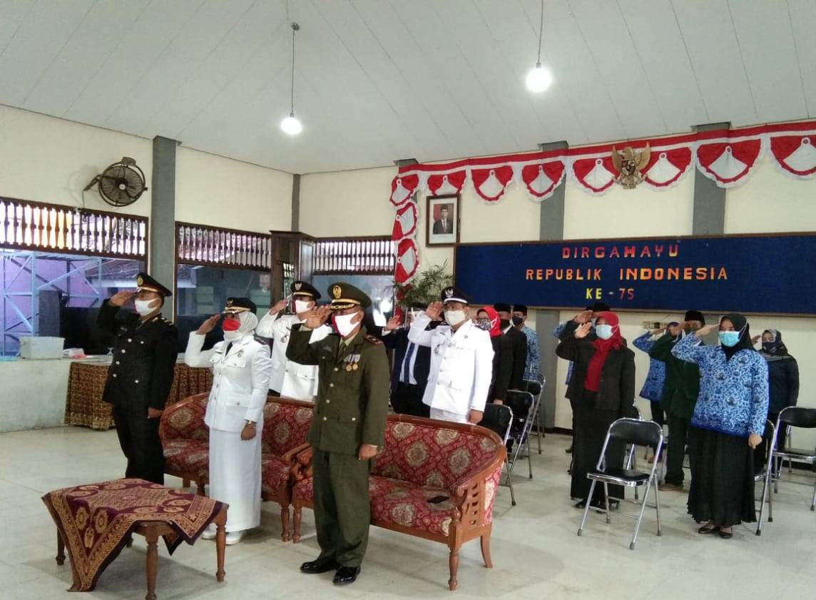 Seputarperak.com- Kegiatan upacara memperingati HUT Ke 75 Republik Indonesia digelar secara daring di aula Kecamatan Kenjeran, Senin pagi, 17 Agustus 2020.