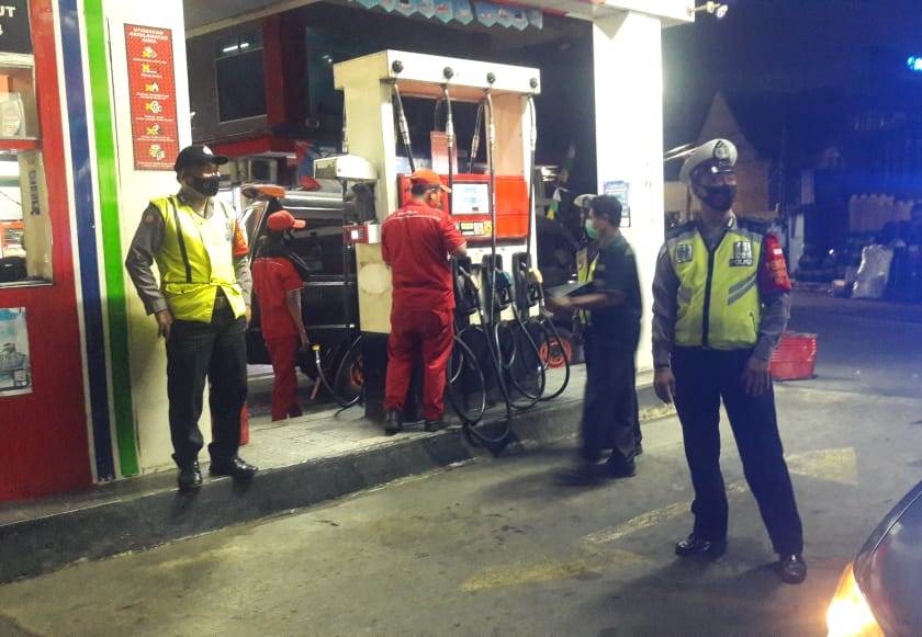 Seputarperak.com- Kegiatan patroli malam dilakukan personil Polsek Pabean Cantikan, Polres Pelabuhan Tanjung Perak di SPBU Jalan Stasiun Kota, Selasa, 18 Agustus 2020.