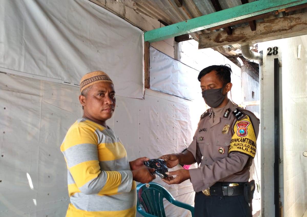 Seputarperak.com- Pembagian masker dilakukan Aipda Dhanu Kriswana, Babinkamtibmas Sukolilo Baru, Polsek Kenjeran, Polres Pelabuhan Tanjung Perak kepada warga Sukolilo Lor RW 03, Rabu siang, 19 Agustus 2020.