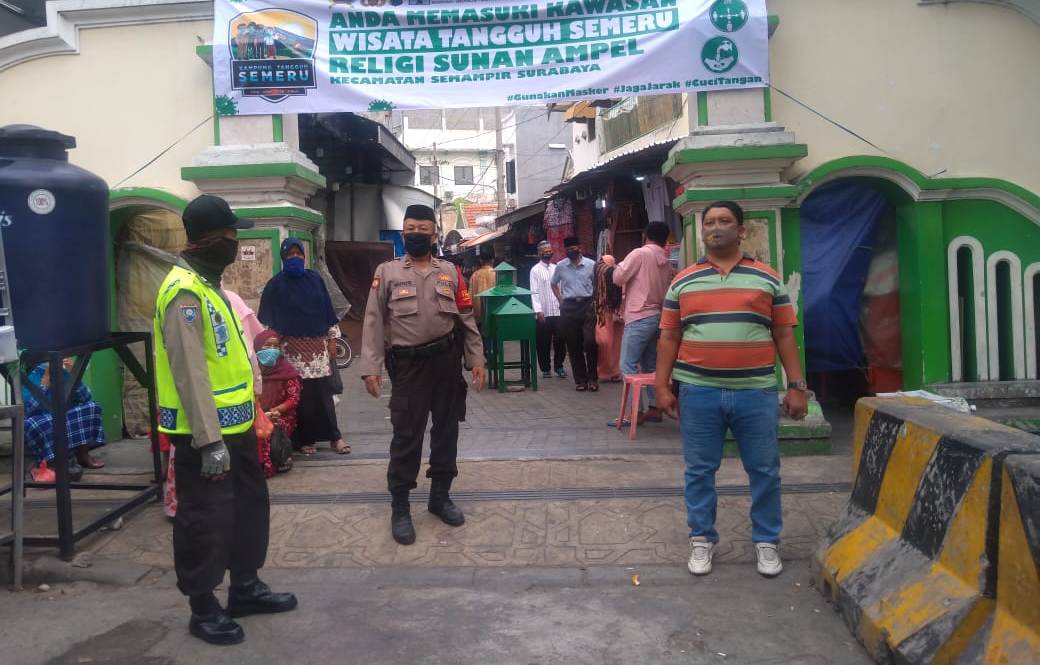 Seputarperak.com- Pengamanan dilakukan personil Polsek Semampir, Polres Pelabuhan Tanjung Perak di wisata religi Ampel, Kamis pagi, 20 Agustus 2020.