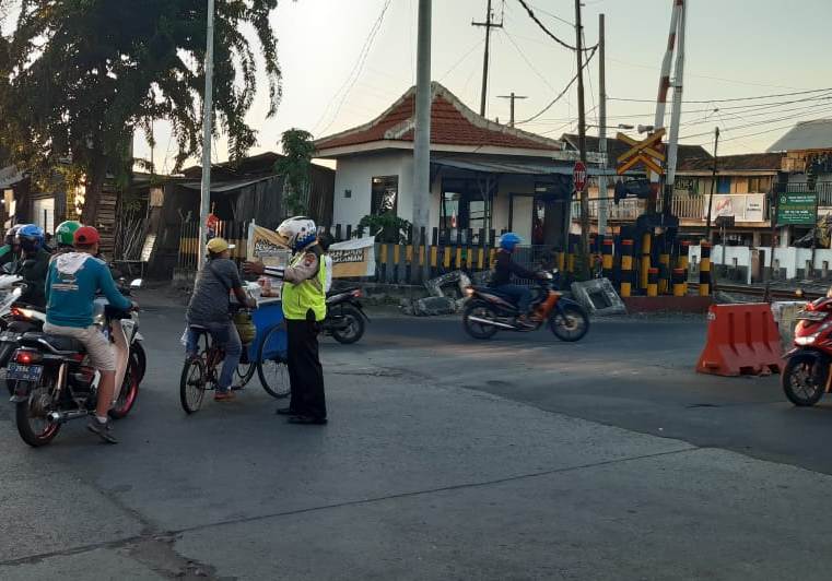 Seputarperak.com- Pengaturan lalu lintas sore dilakukan personil Unit Lantas Polsek Asemrowo, Polres Pelabuhan Tanjung Perak di Jalan Tambak Mayor rel kereta api, Sabtu, 22 Agustus 2020.