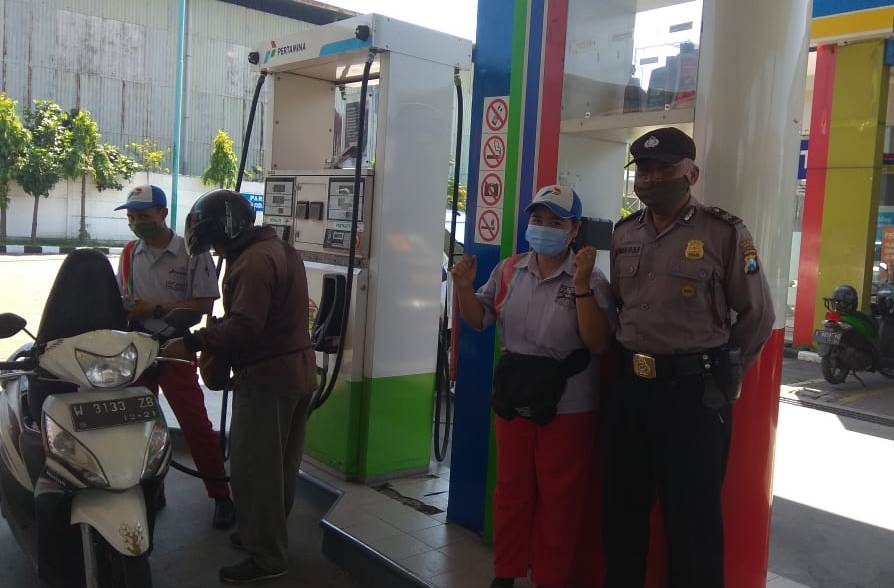 Salah satunya seperti yang dilakukan personil Polsek Asemrowo di SPBU Jalan Margomulyo, Senin siang, 24 Agustus 2020.