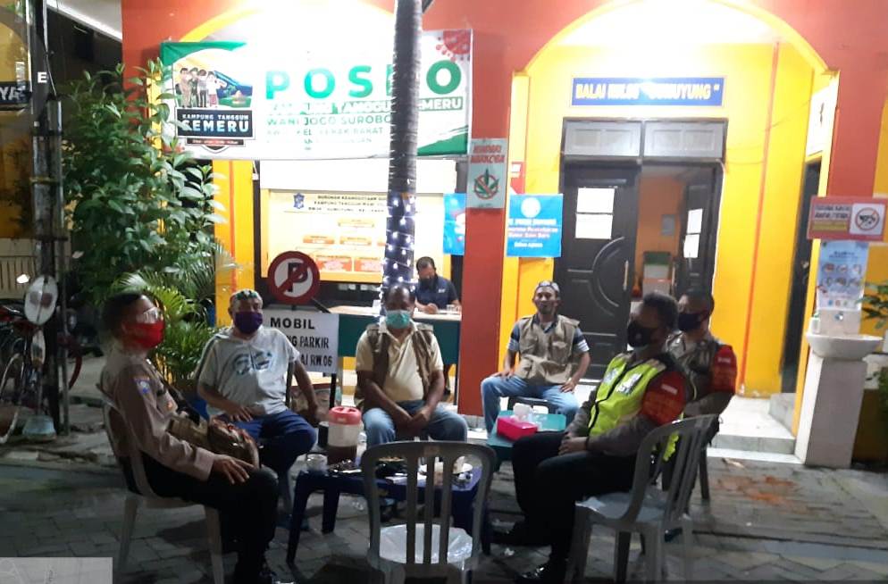 Seputarperak.com- Patroli dilakukan personil Polsek Krembangan, Polres Pelabuhan Tanjung Perak di Kampung Tangguh Semeru RW 06, Kelurahan Perak Barat, Senin malam, 24 Agustus 2020.