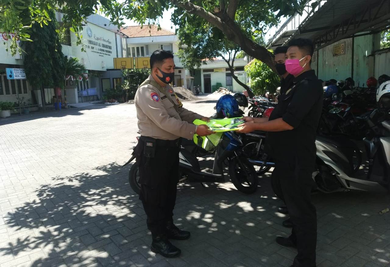 Seputarperak.com- Himbauan 3M (Memakai Masker, Mencuci Tangan dan Menjaga Jarak) disampaikan Bripka Victor Sumbodo, Babinkamtibmas Ujung, Polsek Semampir, Polres Pelabuhan Tanjung Perak kepada sekuriti Sekolah Al Khairiyah, Jalan Sultan Iskandar Muda.