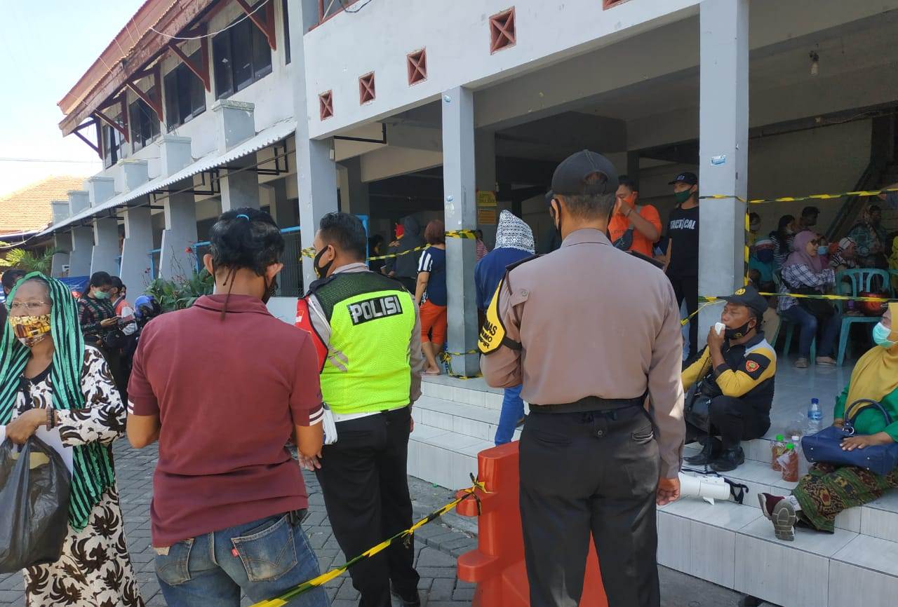 Seputarperak.com- Pengamanan pembagian BLT (Bantuan Langsung Tunai) dilakukan personil Polsek Semampir di Terminal Religi Ampel, Rabu, 2 September 2020.
