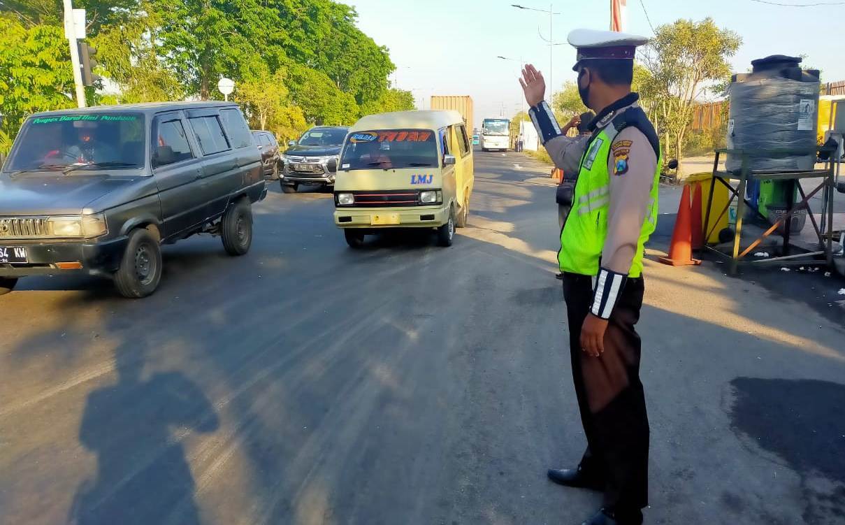 Seputarperak.com- Unit Lantas Polsek Asemrowo, Polres Pelabuhan Tanjung Perak melakukan pengaturan lalu lintas pagi di Jalan Dupak Rukun, Jumat, 4 September 2020.