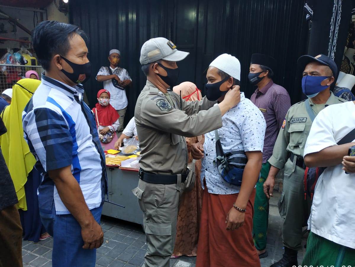 Seputarperak.com- Operasi penertiban masker diglaksanakan Polsek Semampir, Polres Pelabuhan Tanjung Perak di wisata religi Ampel, Minggu pagi, 6 September 2020.