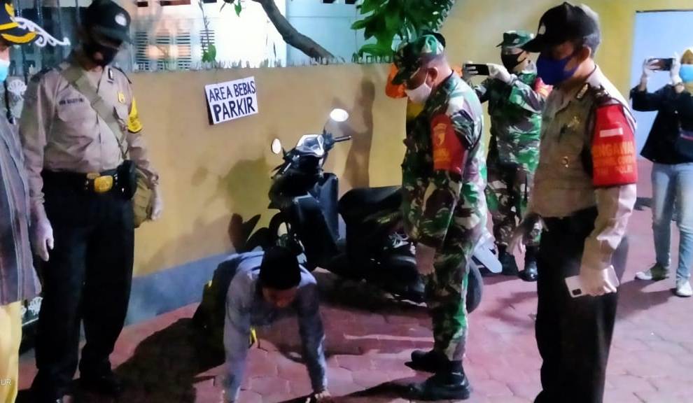 Masyarakat yang kedapatan tidak menggunakan masker diberikan tindakan disiplin berupa push up, kemudian diberikan masker gratis.