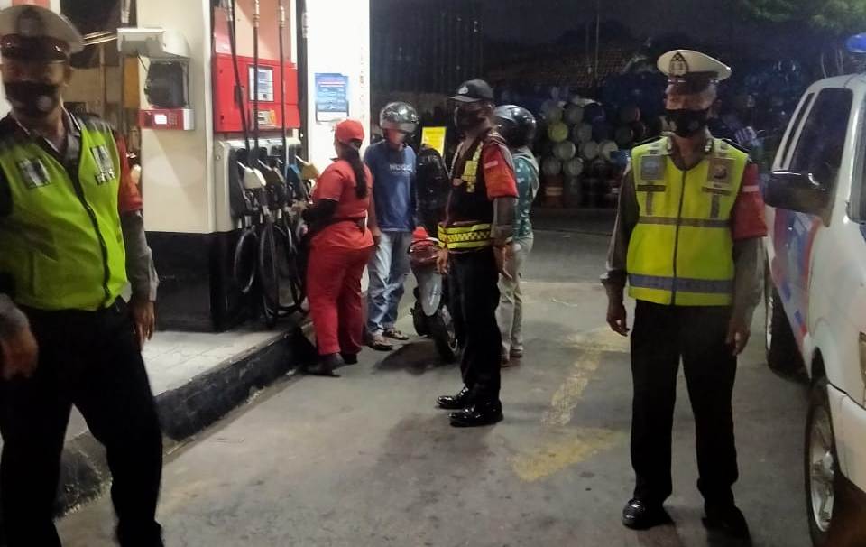 Seputarperak.com- Patroli dilakukan personil Polsek PAbean Cantikan, Polres Pelabuhan Tanjung Perak di SPBU Jalan Stasiun Kota, Selasa malam, 8 September 2020.