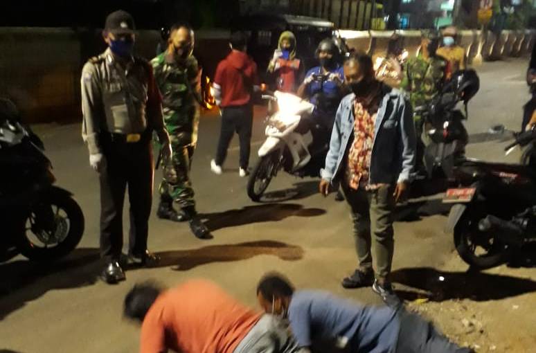 Mereka dijatuhi sanksi disiplin berupa push up dan diberikan masker gratis sambil diingatkan agar tidak lupa lagi memakai masker, untuk mencegah penyebaran Covid-19.