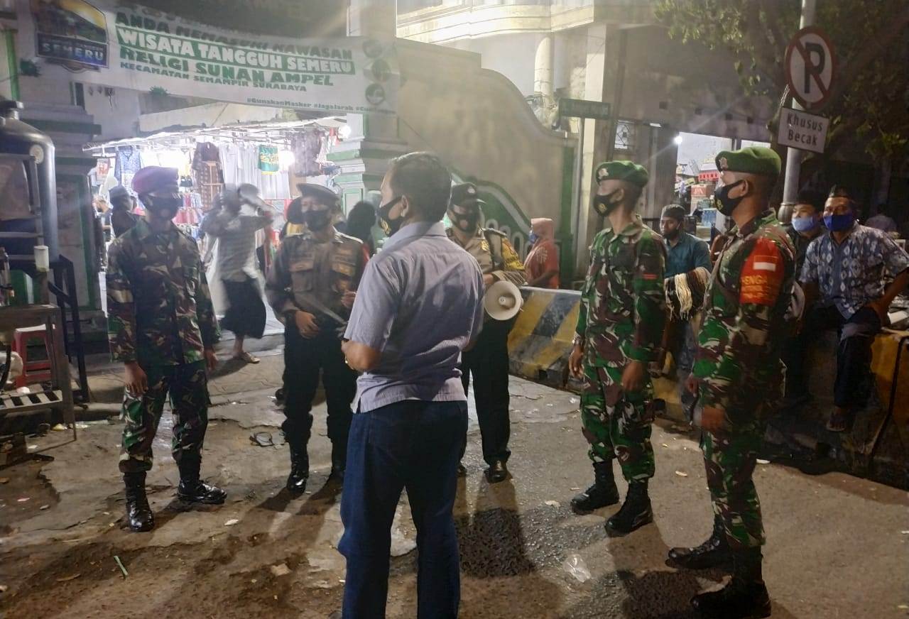 Seperti halnya yang dilakukan personil Polsek Semampir di wisata religi Ampel, Jalan Nyamplungan, Kamis malam, 10 September 2020.