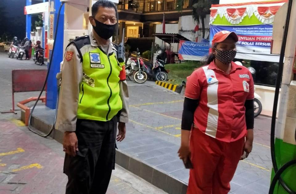 Seputarperak.com- Kegiatan patroli dilakukan personil Polsek Krembangan, Polres Pelabuhan Tanjung Perak di SPBU Jalan Gresik, Kamis malam, 10 September 2020.